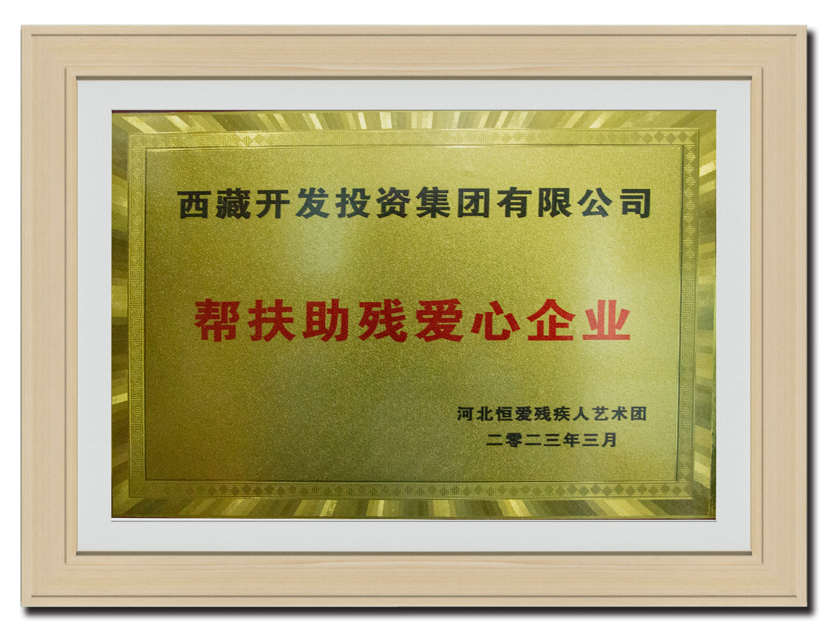 2023年3月 榮獲幫扶助殘愛心企業(yè)獎(jiǎng)
