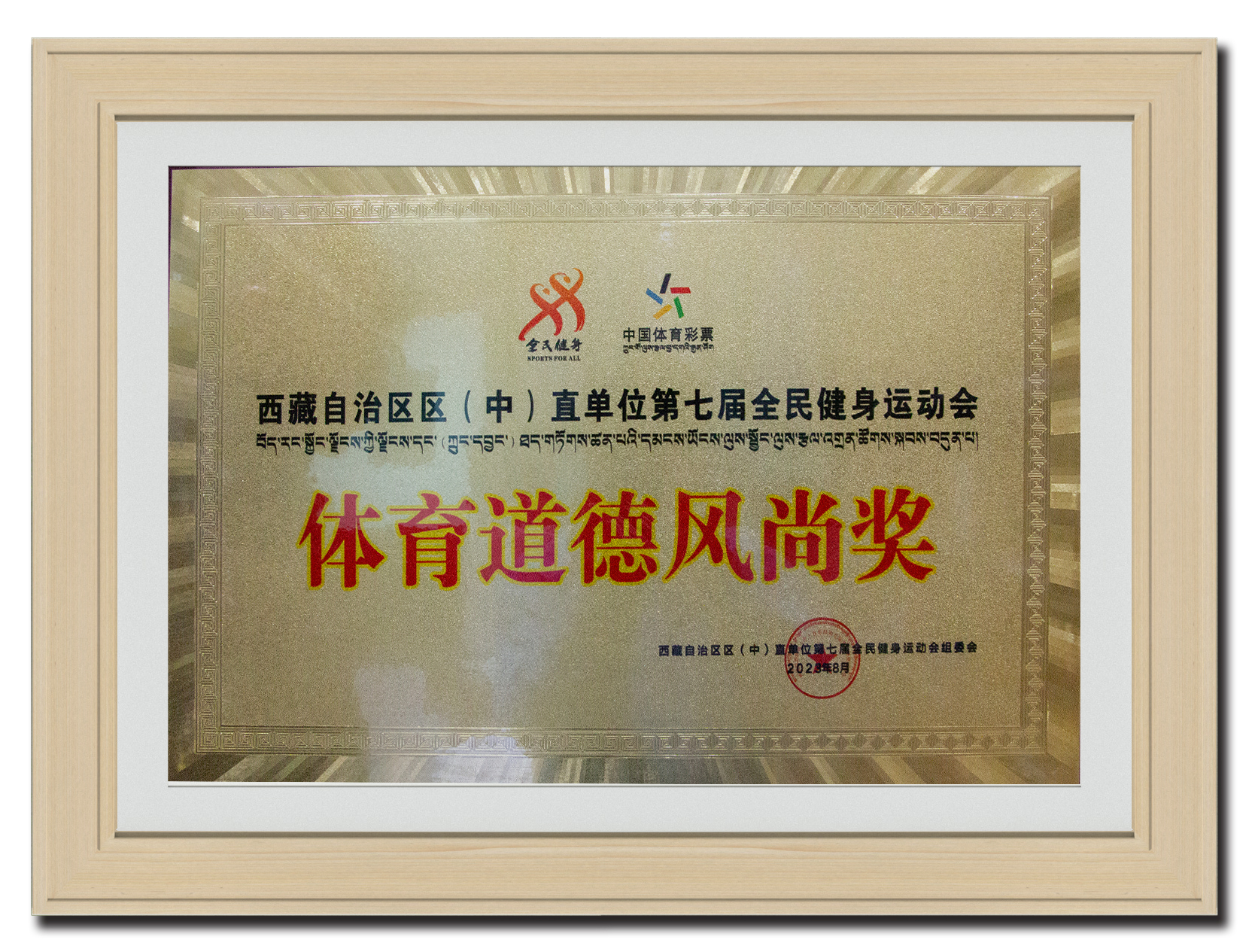 2023年8月 西藏自治區(qū)區(qū)(中)直單位第七屆全民健身運(yùn)動(dòng)會(huì)《體育道德風(fēng)尚獎(jiǎng)》