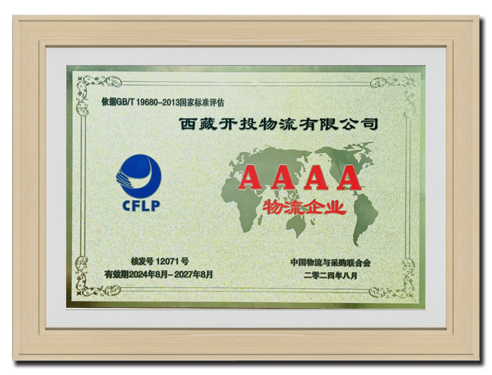 2024年8月 西藏開投物流有限公司AAAA物流企業(yè)