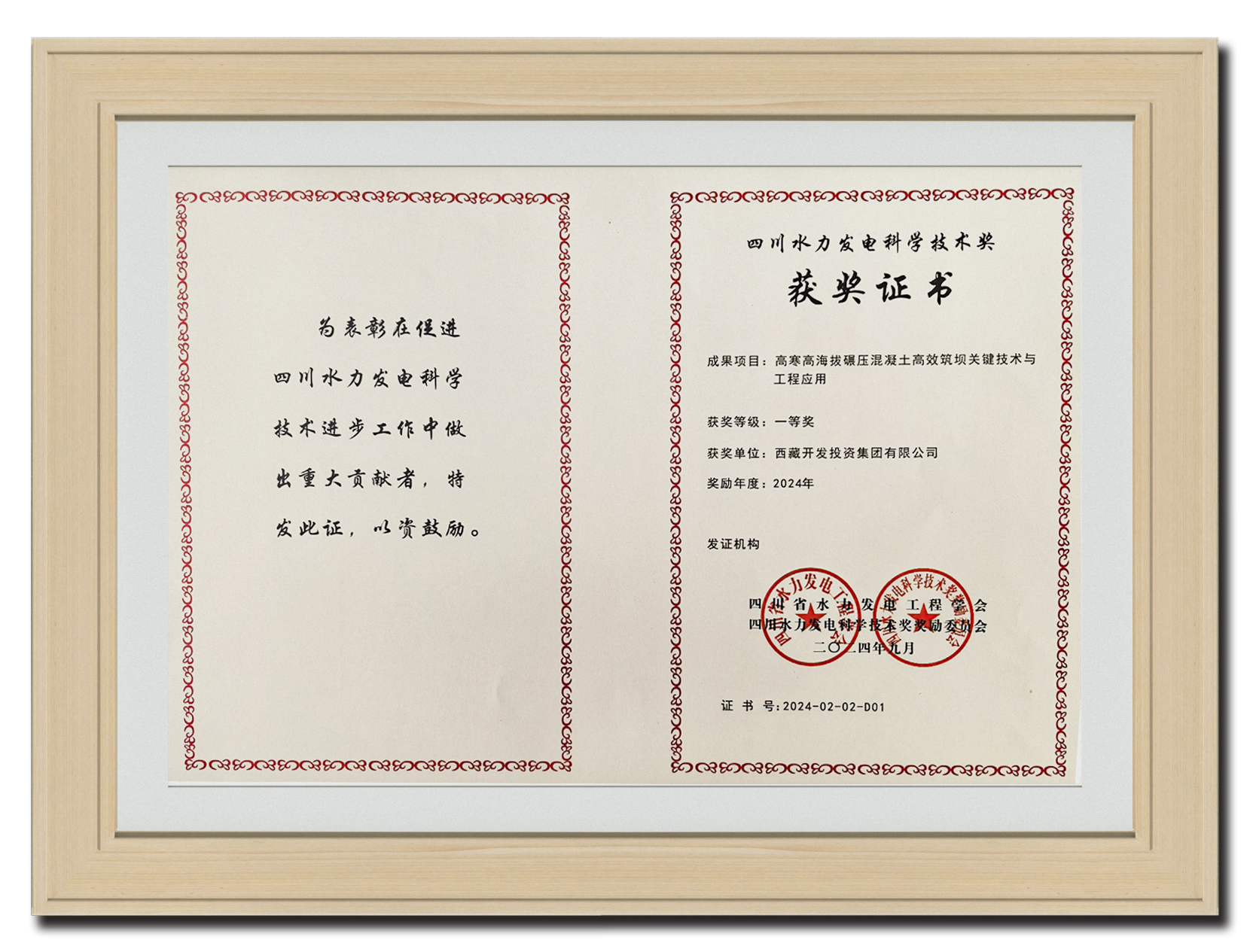 2024年9月 果多水電站“高寒高海拔碾壓混凝土高效筑壩關鍵技術與工程應用”榮獲四川水力發(fā)電科學技術一等獎