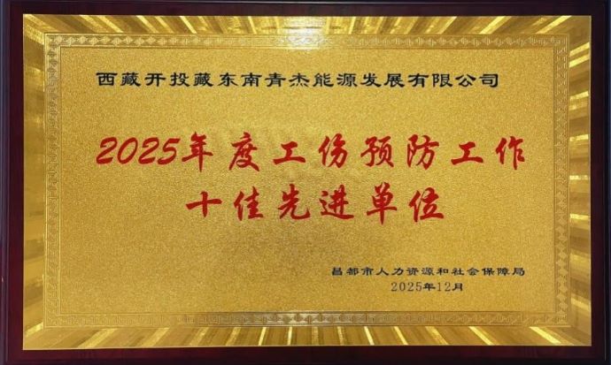 喜報!藏東南青杰能源公司榮獲昌都市“2025年度工傷預(yù)防工作十佳先進單位”稱號
