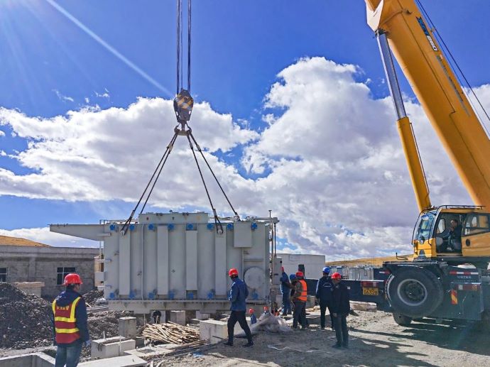 色尼區(qū)達嘎普獨立儲能項目svg預制艙吊裝。吳昊澄 攝