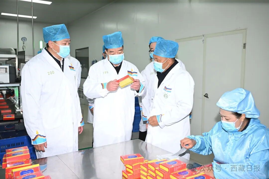 近日,自治區(qū)黨委書(shū)記王君正在區(qū)管國(guó)有企業(yè)調(diào)研企業(yè)發(fā)展經(jīng)營(yíng)情況。這是王君正在西藏甘露藏醫(yī)藥產(chǎn)業(yè)集團(tuán)有限公司了解技術(shù)研發(fā)和藏藥產(chǎn)業(yè)發(fā)展等情況。記者 李洲 攝