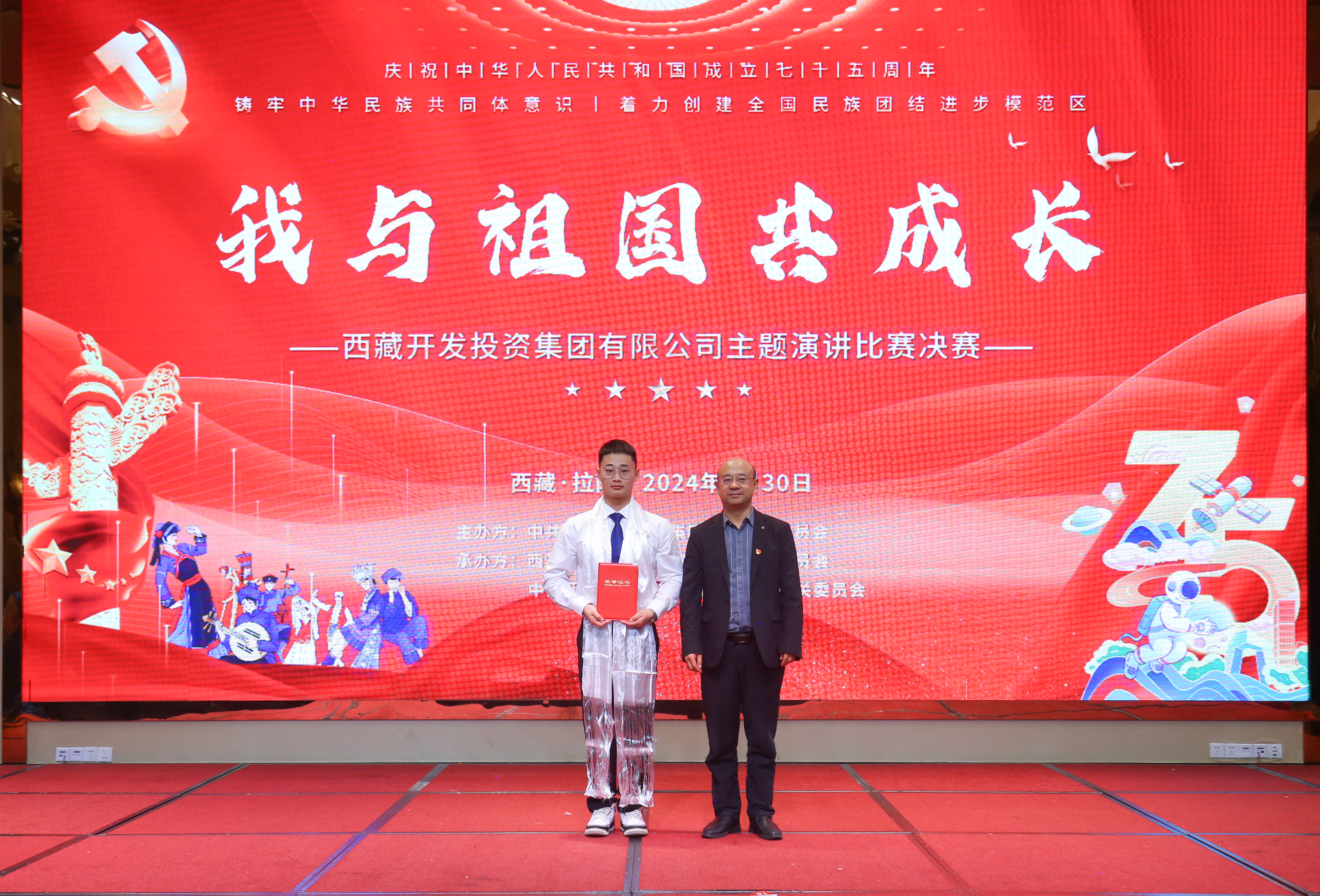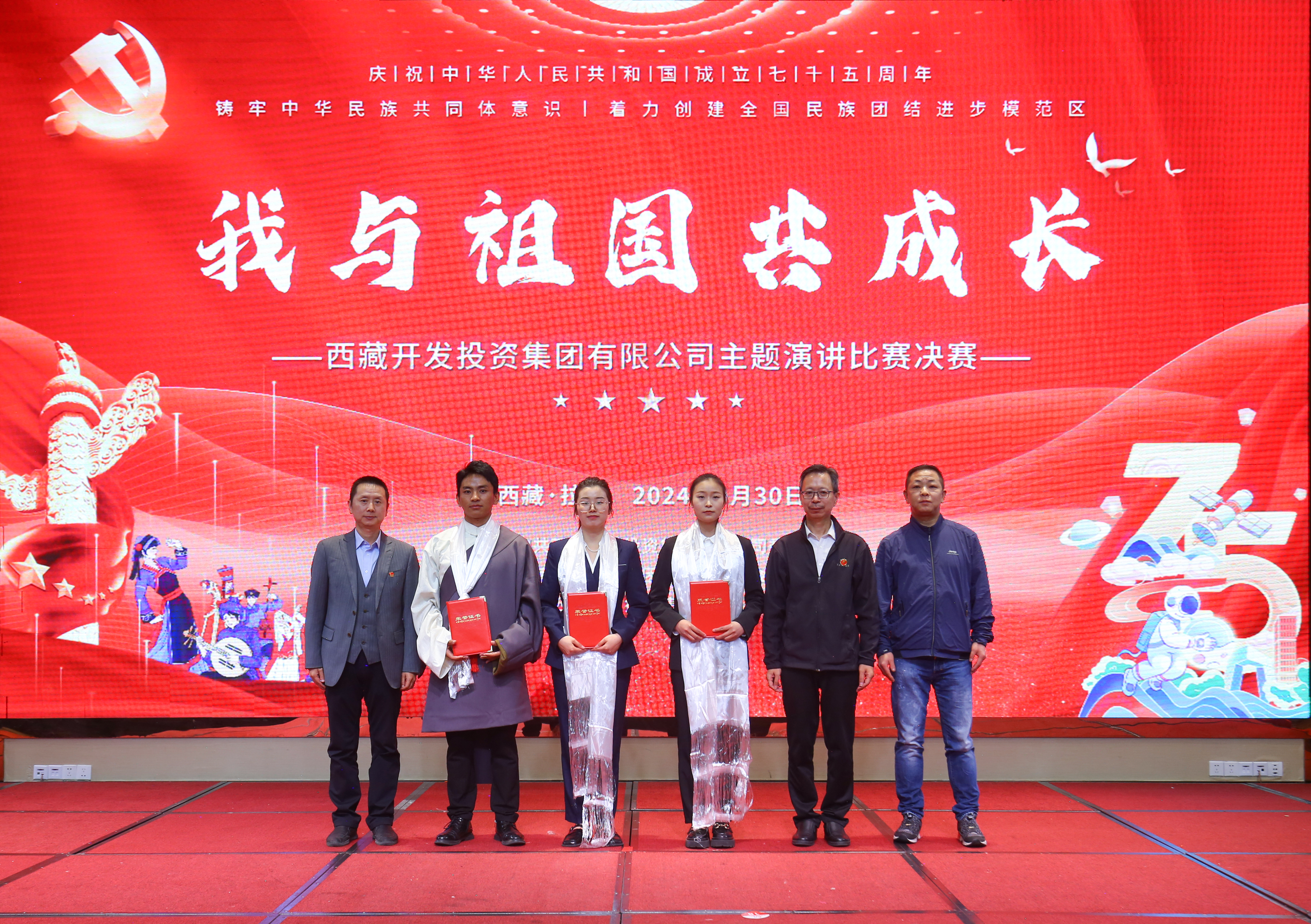 祁騰武在致辭中表示:“今天我們滿懷喜悅的心情,歡聚一堂,以‘我與祖國(guó)共成長(zhǎng)’主題演講比賽為載體,獻(xiàn)上我們對(duì)祖國(guó)母親最誠(chéng)摯的祝福。我們作為邊疆少數(shù)民族地區(qū)的建設(shè)者,充分感受到了黨中央和全國(guó)人民的關(guān)心和支持,充分感受到了近年來(lái)西藏經(jīng)濟(jì)社會(huì)發(fā)展的重大變化。作為新時(shí)代的開(kāi)拓者,我們肩負(fù)著推動(dòng)國(guó)家發(fā)展、民族復(fù)興的重任,希望大家將個(gè)人理想與中華民族偉大復(fù)興結(jié)合起來(lái),將個(gè)人成長(zhǎng)同集團(tuán)發(fā)展、西藏發(fā)展結(jié)合起來(lái),扎根西藏、奉獻(xiàn)西藏,團(tuán)結(jié)各族同志攜手同行,凝聚智慧與力量,加快推動(dòng)集團(tuán)公司‘三步走’‘三翻番’戰(zhàn)略目標(biāo)實(shí)現(xiàn),為建設(shè)團(tuán)結(jié)富裕文明和諧美麗的社會(huì)主義現(xiàn)代化新西藏貢獻(xiàn)力量。”