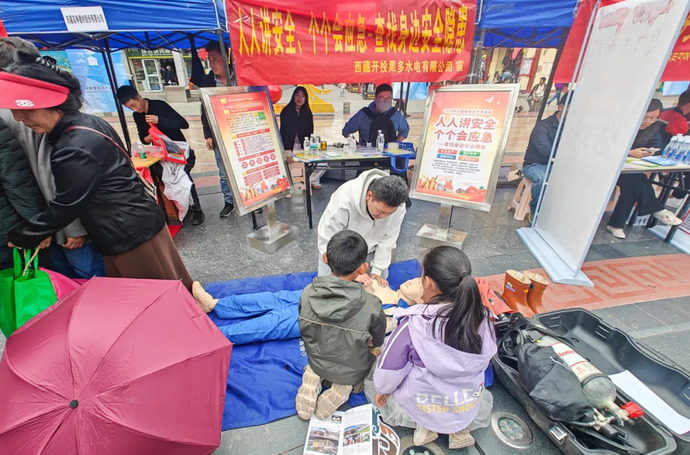 6月16日,西藏開投果多水電公司積極響應(yīng)昌都市安全生產(chǎn)委員會辦公室及昌都市應(yīng)急管理局邀請,參加昌都市“人人講安全、個個會應(yīng)急——查找身邊安全隱患”為主題的安全宣傳咨詢?nèi)栈顒?。活動現(xiàn)場,果多水電公司向市民發(fā)放了安全用電手冊,積極普及安全用電知識,現(xiàn)場講解了各電壓等級驗電棒、三相短路接地線、高壓拉閘桿及正壓式空氣呼吸器、五點式安全帶等多種安全設(shè)備相關(guān)知識,并開展了心肺復(fù)蘇模擬器實操演示,吸引了眾多市民駐足觀摩,部分市民還積極參與了心肺復(fù)蘇模擬實操。