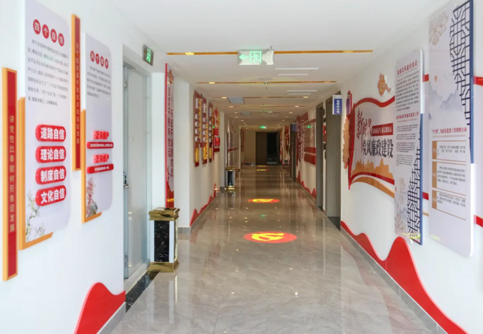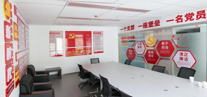 集團(tuán)黨建活動(dòng)陣地位于集團(tuán)辦公樓11樓,占地180㎡,分為黨建文化長廊、黨員活動(dòng)室、支部會議室三個(gè)功能區(qū),集黨員學(xué)習(xí)教育、組織生活開展、黨建成果展示等功能于一體。其中,黨建文化長廊由黨建引領(lǐng)發(fā)展、傳承紅色精神、筑牢戰(zhàn)斗堡壘、挺膺擔(dān)當(dāng)奮進(jìn)、構(gòu)建精神文明、建設(shè)廉政文化六個(gè)部分組成,圖文并茂的形式讓每一位走過長廊的黨員都能深刻領(lǐng)悟黨建工作的深刻內(nèi)涵。黨員活動(dòng)室包含了組織架構(gòu)展示、榮譽(yù)展示、黨建工作展示、學(xué)習(xí)區(qū)等內(nèi)容,配備桌椅茶幾等休閑設(shè)施,布置溫馨,氛圍濃厚。