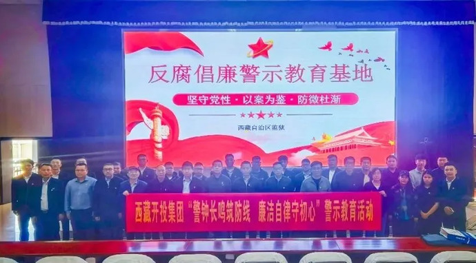 為扎實(shí)開展深入貫徹中央八項規(guī)定精神學(xué)習(xí)教育,堅定不移推進(jìn)全面從嚴(yán)治黨向縱深發(fā)展,筑牢黨員干部職工拒腐防變思想堤壩,6月26日,西藏開投集團(tuán)組織黨員干部職工赴西藏自治區(qū)監(jiān)獄管理局廉政警示教育基地開展“警鐘長鳴筑防線,廉潔自律守初心”警示教育活動。集團(tuán)黨委委員、副總經(jīng)理溫勇、尼瑪與集團(tuán)總部、所屬單位黨員干部職工共70余人參加活動。
