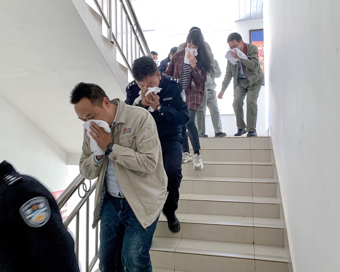 (演練火災(zāi)現(xiàn)場(chǎng)逃離 劉式花攝)