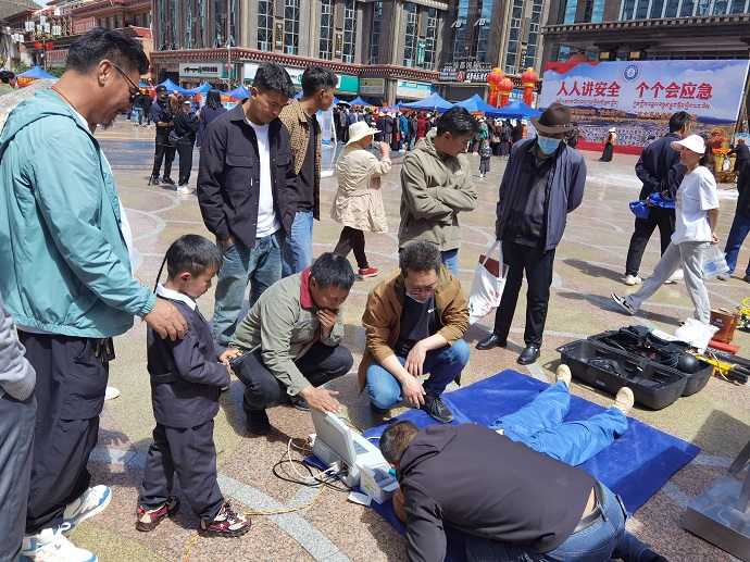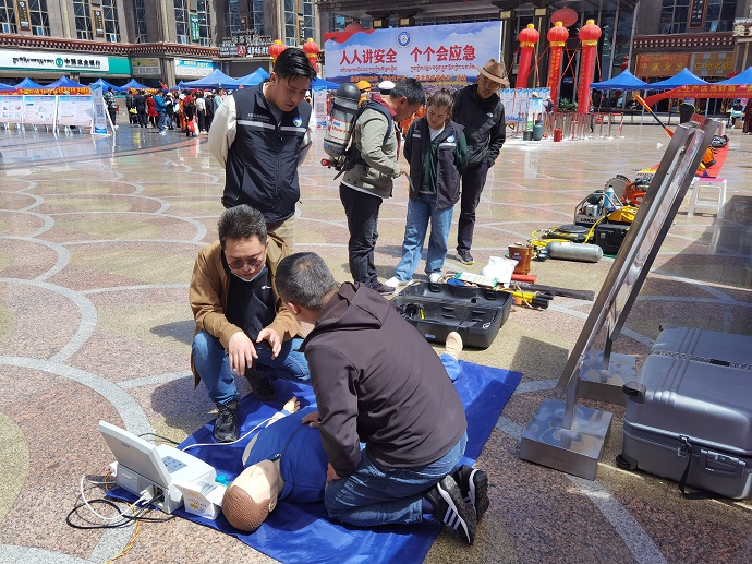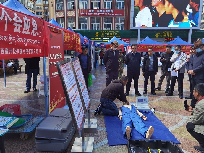 本次活動,果多水電公司向市民展示了心肺復(fù)蘇法操作演示、正壓式空氣呼吸器和安全帶等應(yīng)急救援器材的正確使用方法。昌都市委常委、常務(wù)副市長吳應(yīng)海,昌都市政府副秘書長張耀暉,昌都市應(yīng)急管理局黨委書記霍映章一行到果多水電公司安全宣傳展臺參觀了心肺復(fù)蘇法演示,并對果多水電公司本次活動給予好評。