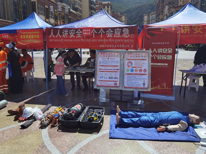 今年6月是第22個全國“安全生產(chǎn)月”,主題為“人人講安全、個個會應(yīng)急”。果多水電公司受昌都市應(yīng)急管理局邀請,在茶馬廣場開展“6.16安全宣傳咨詢?nèi)?rdquo;活動。