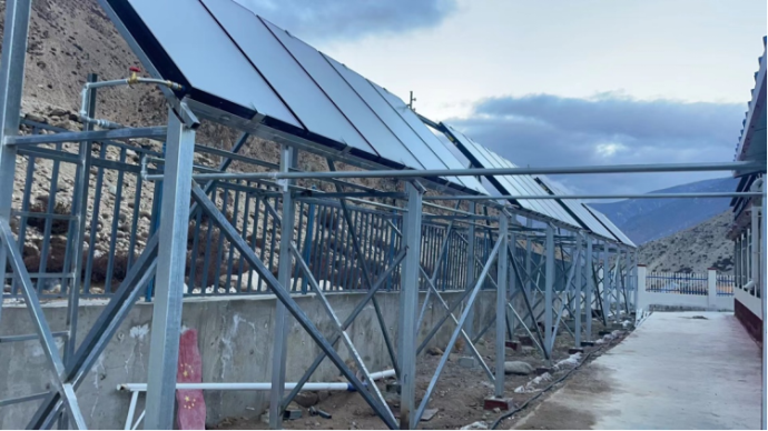日喀則市定日縣曲當(dāng)鄉(xiāng)德吉村、優(yōu)帕村、嚴(yán)曲村位于珠穆朗瑪峰自然保護區(qū)核心區(qū),均為定日縣偏遠(yuǎn)邊境鄉(xiāng)村。項目供暖總面積為593.39m2,包括太陽能集熱器系統(tǒng)、輔助熱源(空氣源熱泵),儲熱系統(tǒng)、末端設(shè)施,光伏發(fā)電系統(tǒng),建筑節(jié)能改造等內(nèi)容。在日喀則市發(fā)改委的領(lǐng)導(dǎo)下,南亞公司(西藏開投下屬二級公司)以人為本、科學(xué)管理、精心組織,克服設(shè)備運輸艱難、人員組織困難、施工機械短缺、項目工期緊張等種種困難,如期實現(xiàn)了項目投產(chǎn)。同時,為評估和提升項目效能,配套了PLC自控柜,對供暖數(shù)據(jù)進行遠(yuǎn)程收集及數(shù)據(jù)分析。在本項目運行一個采暖期后,將對項目的規(guī)模效益、財務(wù)效益、綜合效益進行綜合評價,并對清潔能源供暖方式替代傳統(tǒng)燃料的減碳效果進行科學(xué)分析,確保形成村居供暖工程可靠性好、性價比高、適宜推廣的決策方案,為全面復(fù)制推廣實施全區(qū)農(nóng)牧區(qū)清潔供暖供熱項目做出貢獻。