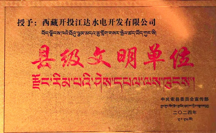 西藏開(kāi)投江達(dá)水電開(kāi)發(fā)有限公司獲評(píng)縣級(jí)文明單位
