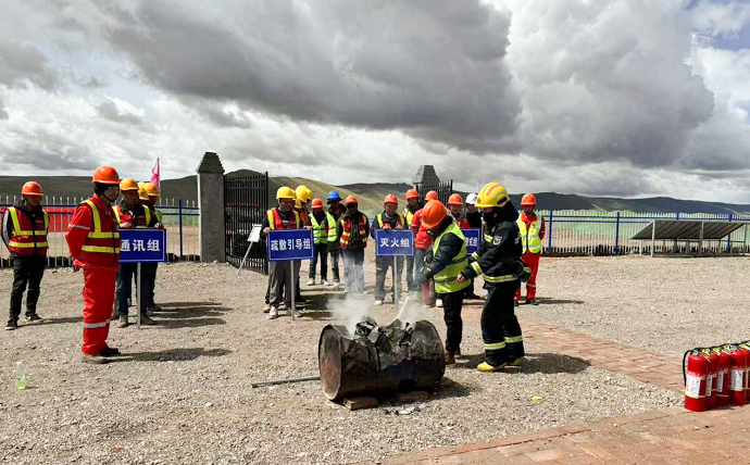 此次演習邀請了那曲市安多縣消防救援大隊防火參謀進行消防知識培訓及實際操作教學。培訓過程中,首先觀看了近年來多起施工現(xiàn)場火災典型案例,并對案例進行了深刻剖析,明晰了火災事故中相應人員所承擔的法律責任,同時講解了預防、滅火和自救逃生方法。接著,消防隊通過以練代訓的方式,讓參訓人員上手實操,全面了解干粉滅火器的使用方法。