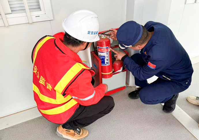 演練結(jié)束后,消防人員帶領項目管理人員對辦公區(qū)、宿舍、食堂等區(qū)域進行防火安全巡查,通過逐個檢查和詳細講解,進一步排除火災安全隱患。