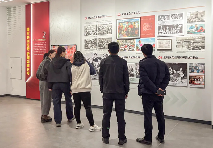 陳列館分“宣傳中央政策,維護(hù)民族團(tuán)結(jié)”“鑄牢共同思想,贊頌如歌歲月”“推動(dòng)解放思想,凝聚發(fā)展力量”“守正創(chuàng)新?lián)姑e旗鑄魂譜華章”四大板塊,翔實(shí)展示了黨的十八大以來,自治區(qū)黨委堅(jiān)持以習(xí)近平新時(shí)代中國(guó)特色社會(huì)主義思想和習(xí)近平文化思想統(tǒng)攬西藏宣傳思想文化工作,推動(dòng)西藏宣傳思想文化工作守正創(chuàng)新發(fā)展,在圍繞中心、服務(wù)大局中始終發(fā)揮特殊重要的作用的生動(dòng)實(shí)踐。