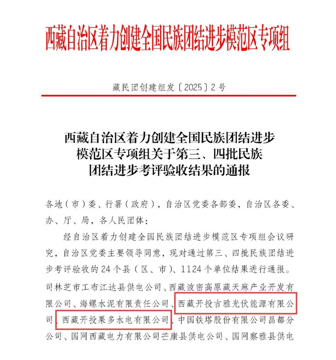 喜報(bào)!吉雅光伏公司、果多水電公司通過(guò)自治區(qū)第三、四批民族團(tuán)結(jié)進(jìn)步考評(píng)驗(yàn)收