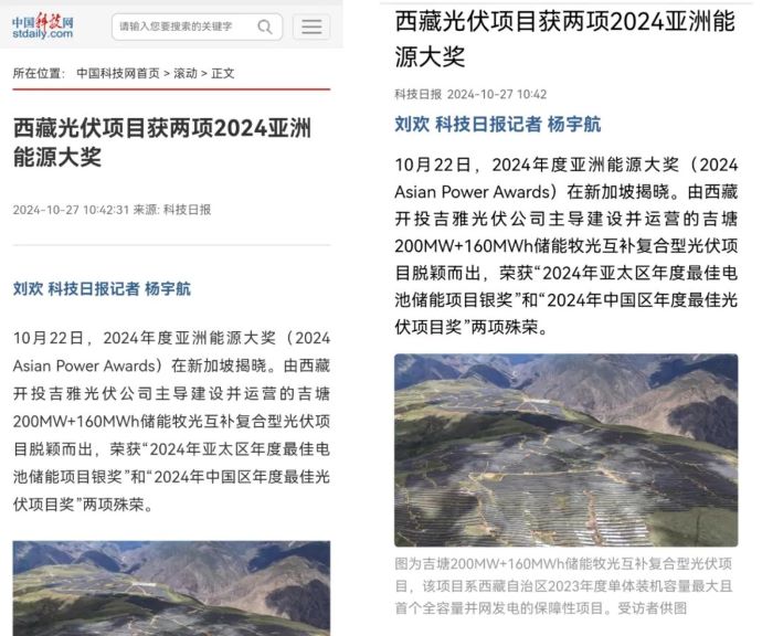 編者按:近日,中國科技網(wǎng)、科技日?qǐng)?bào)、西藏日?qǐng)?bào)、西藏發(fā)布、中國西藏新聞網(wǎng)、西藏商報(bào)、昌都發(fā)布等多家媒體集中宣傳報(bào)道了西藏開投吉雅光伏公司榮獲兩項(xiàng)亞洲能源大獎(jiǎng)相關(guān)事宜。摘要如下: