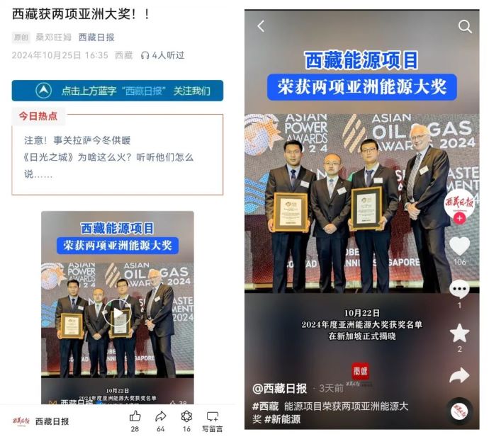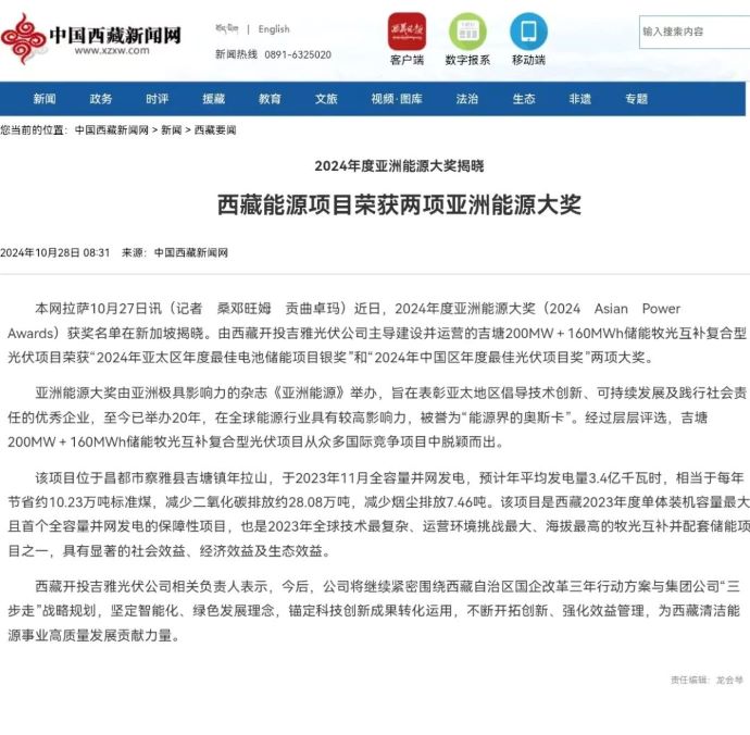 媒體報(bào)道丨西藏能源項(xiàng)目榮獲兩項(xiàng)亞洲能源大獎(jiǎng)