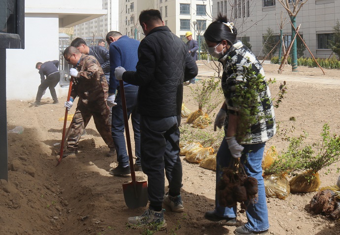 活動(dòng)現(xiàn)場(chǎng),在聽取工作人員講解植樹注意事項(xiàng)后,大家三五一組、分工協(xié)作,有的揮鍬鏟土、填苗澆水,有的培土圍堰、澆水灌溉,還有的清掃垃圾、搬運(yùn)雜物。現(xiàn)場(chǎng)氣氛活躍、組織有序,呈現(xiàn)出一片熱火朝天的忙碌景象。每道工序一絲不茍、認(rèn)真細(xì)致,展現(xiàn)了團(tuán)結(jié)協(xié)作、奮發(fā)向上的精神風(fēng)貌。