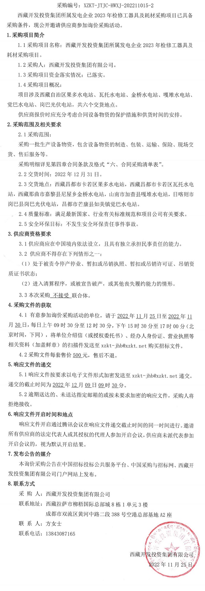 西藏開發(fā)投資集團(tuán)所屬發(fā)電企業(yè)2023年檢修工器具及耗材