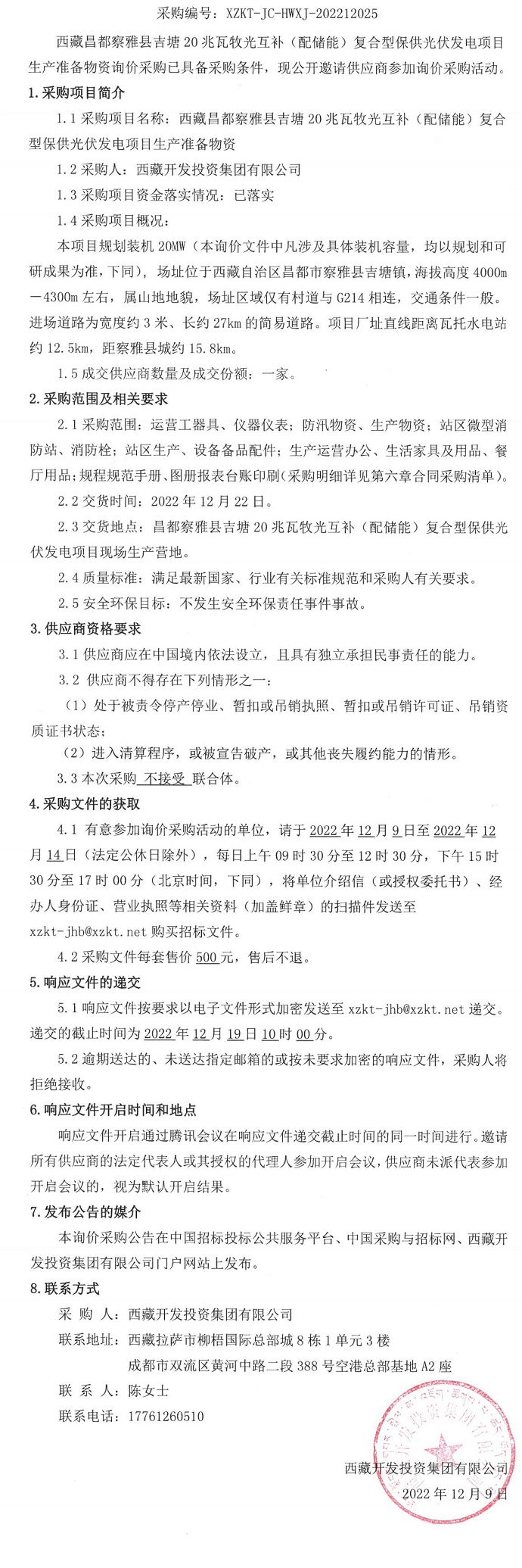 光伏發(fā)電項(xiàng)目生產(chǎn)準(zhǔn)備物資詢價(jià)采購(gòu)公告