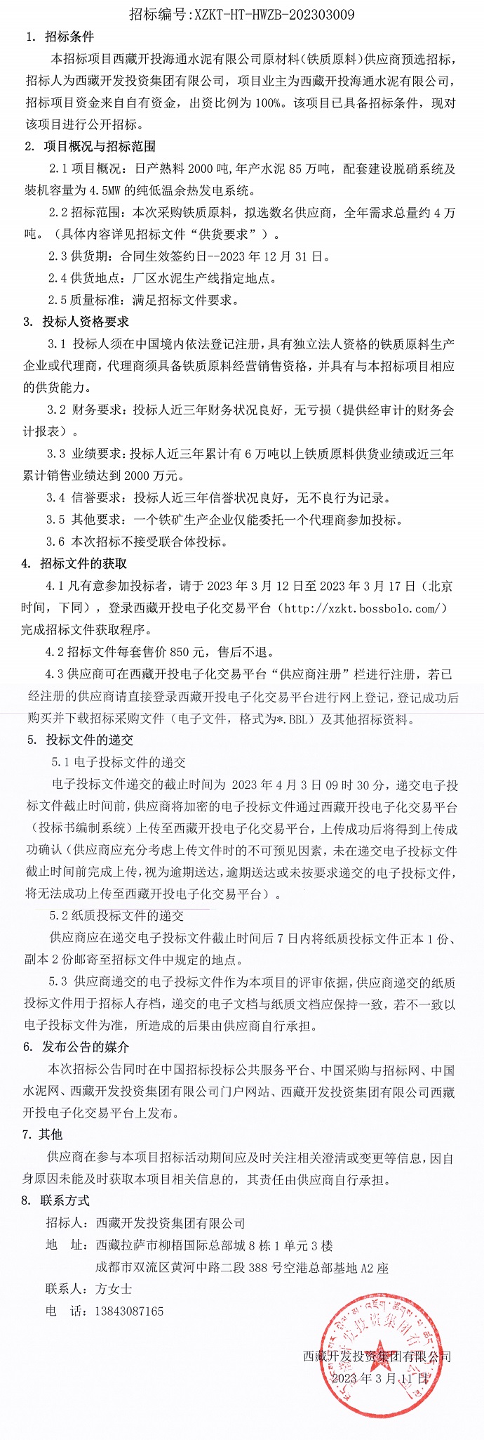 西藏開投海通水泥有限公司原材料(鐵質(zhì)原料)