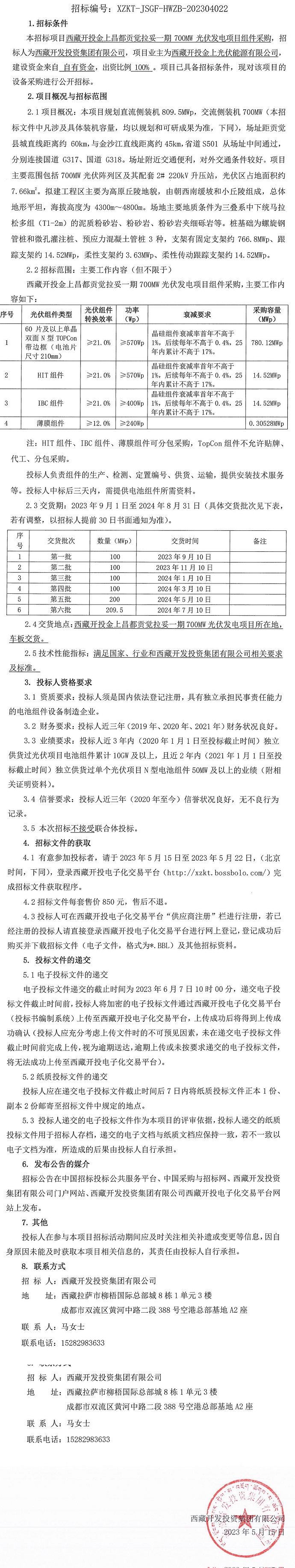 西藏開投金上昌都貢覺拉妥一期700MW光伏發(fā)電項(xiàng)目組件采購(gòu)招標(biāo)公告
