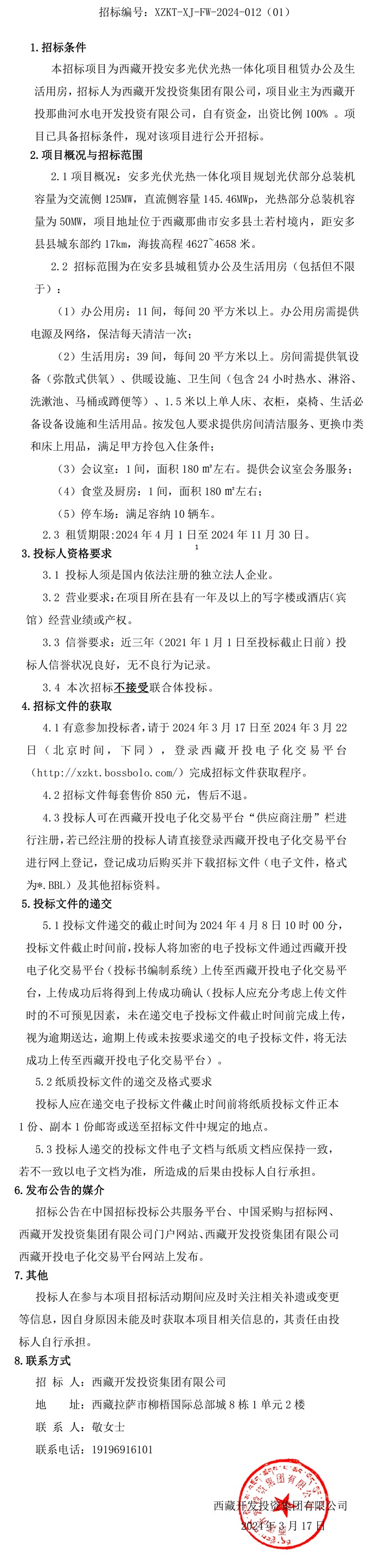 西藏開投安多光伏光熱一體化項(xiàng)目租賃辦公及生活用房公告