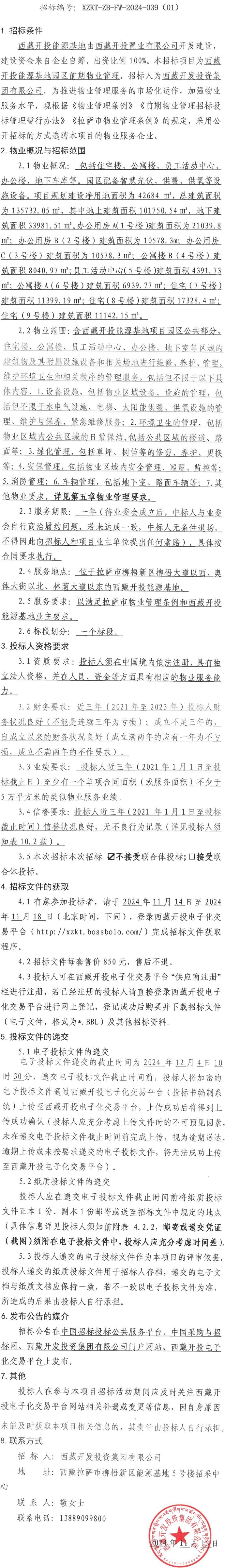西藏開(kāi)投能源基地園區(qū)前期物業(yè)管理招標(biāo)公告 (第二次 )