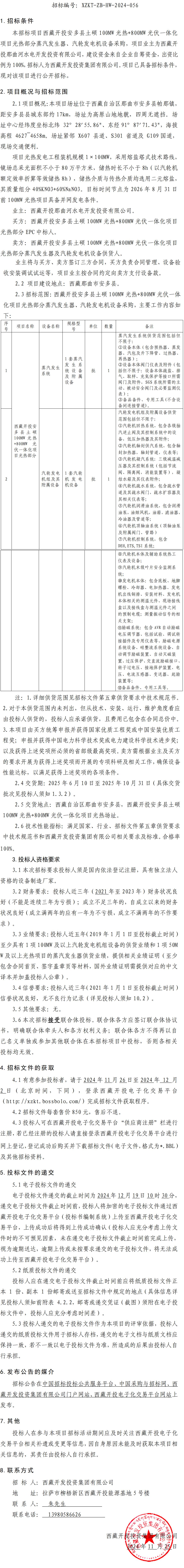 西藏開投安多縣土碩 100MW 光熱+800MW 光伏一體化項目光熱部分蒸汽發(fā)生器、汽輪發(fā)電機設備采購招標公告