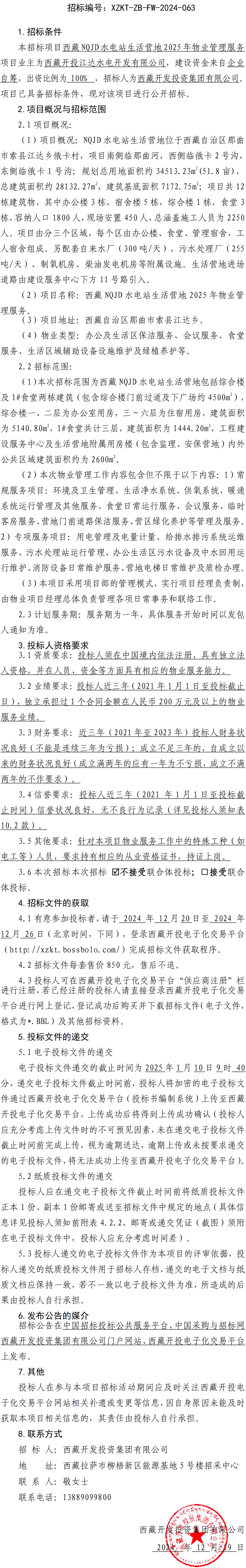 西藏NQJD水電站生活營地 2025 年物業(yè)管理服務(wù)招標(biāo)公告