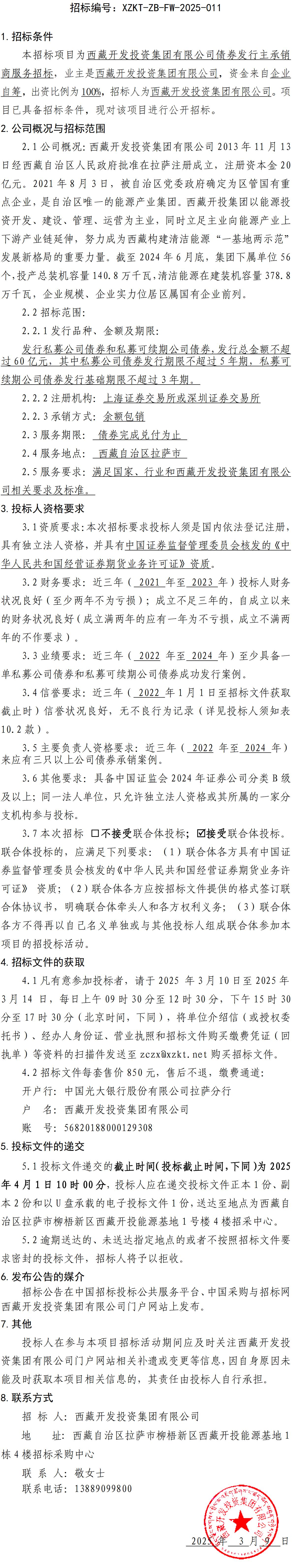 西藏開發(fā)投資集團有限公司債券發(fā)行主承銷商服務招標公告