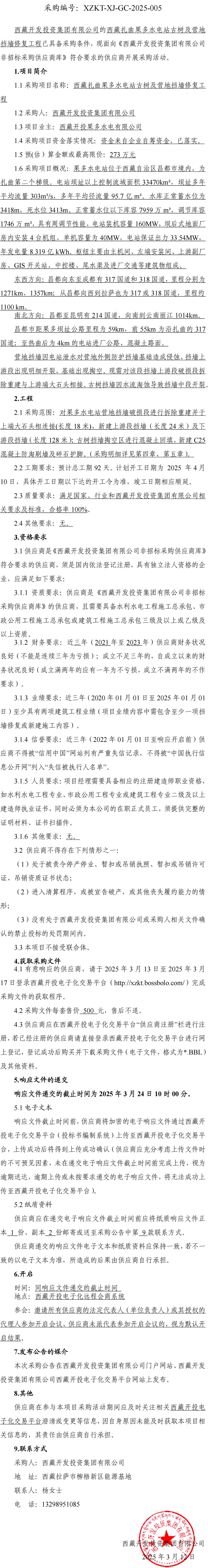 西藏扎曲果多水電站古樹及營(yíng)地?fù)鯄π迯?fù)工程詢價(jià)采購公告