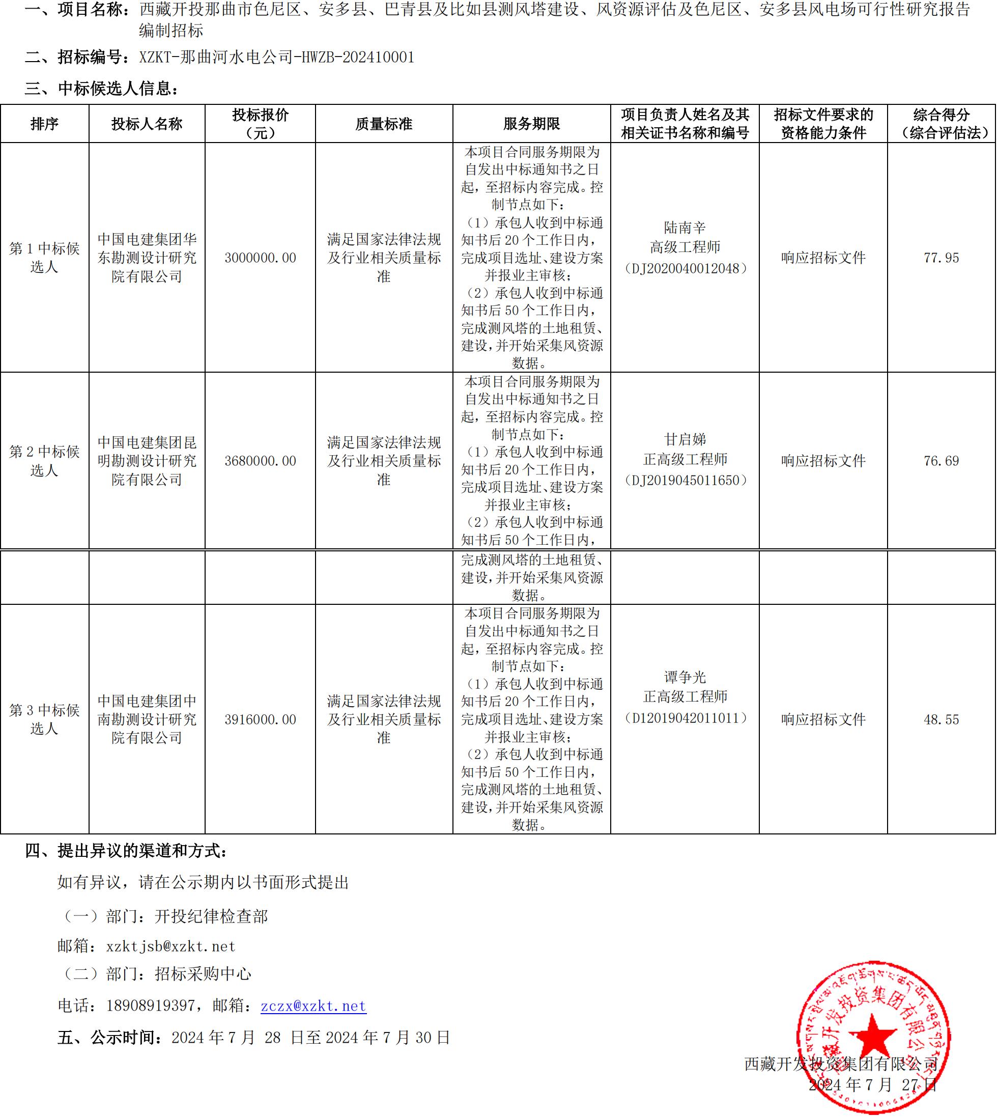 中標(biāo)候選人公示