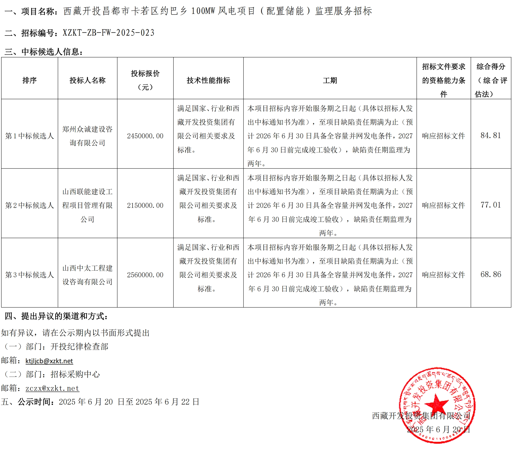 中標(biāo)候選人公示
